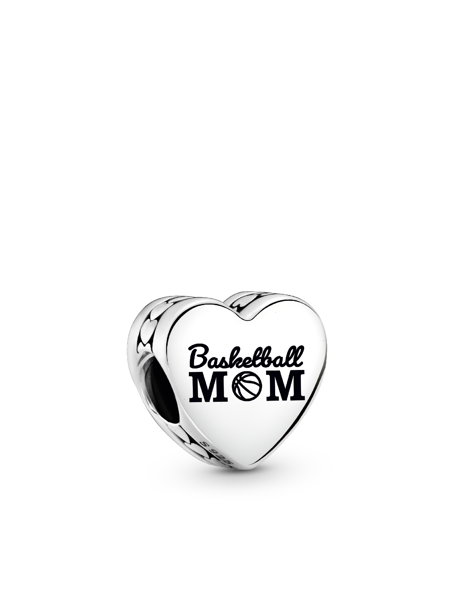 Show your pride for the game with this sterling silver Engravable Basketball Mom Heart Charm, featuring a row of polished hearts around the edges. Engraved with "Basketball Mom," with a basketball as the "O," this charm is a perfect tribute to the mom who supports every dribble and dunk. The back is engravable, offering space for a custom engraving to make this charm a unique and meaningful keepsake.
