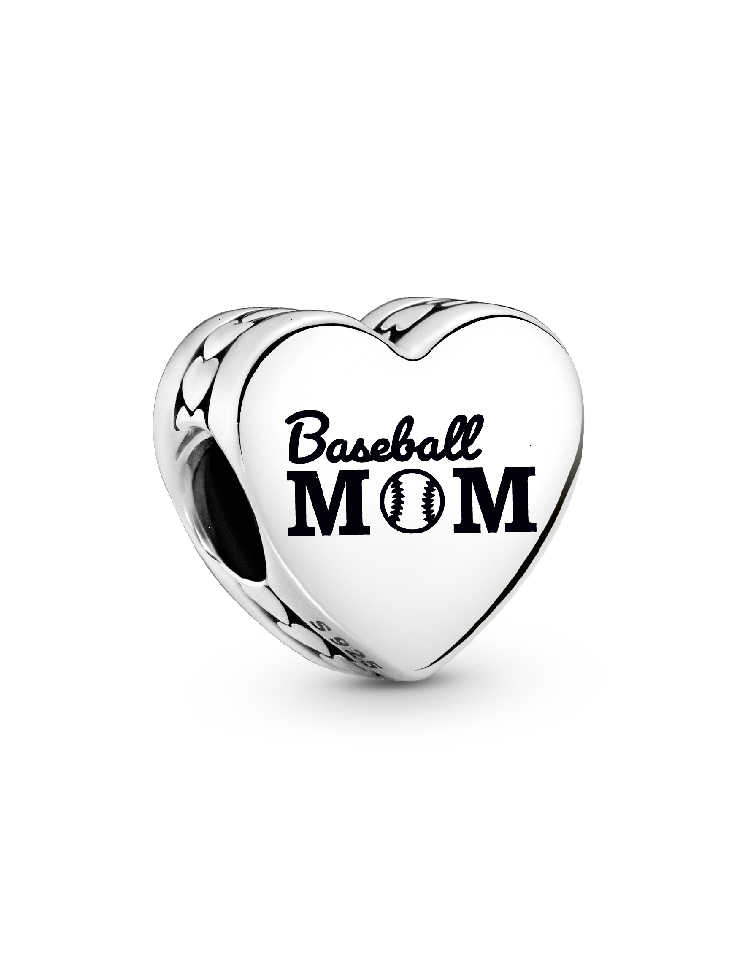 Show your pride for America's pastime with this sterling silver Engravable Baseball Mom Heart Charm, featuring a row of polished hearts around the edges. Engraved with "Baseball Mom," with a baseball as the "O," this charm is a perfect way to commemorate the joy and passion you bring to the game. Add a custom engraving on the back for a personal touch.