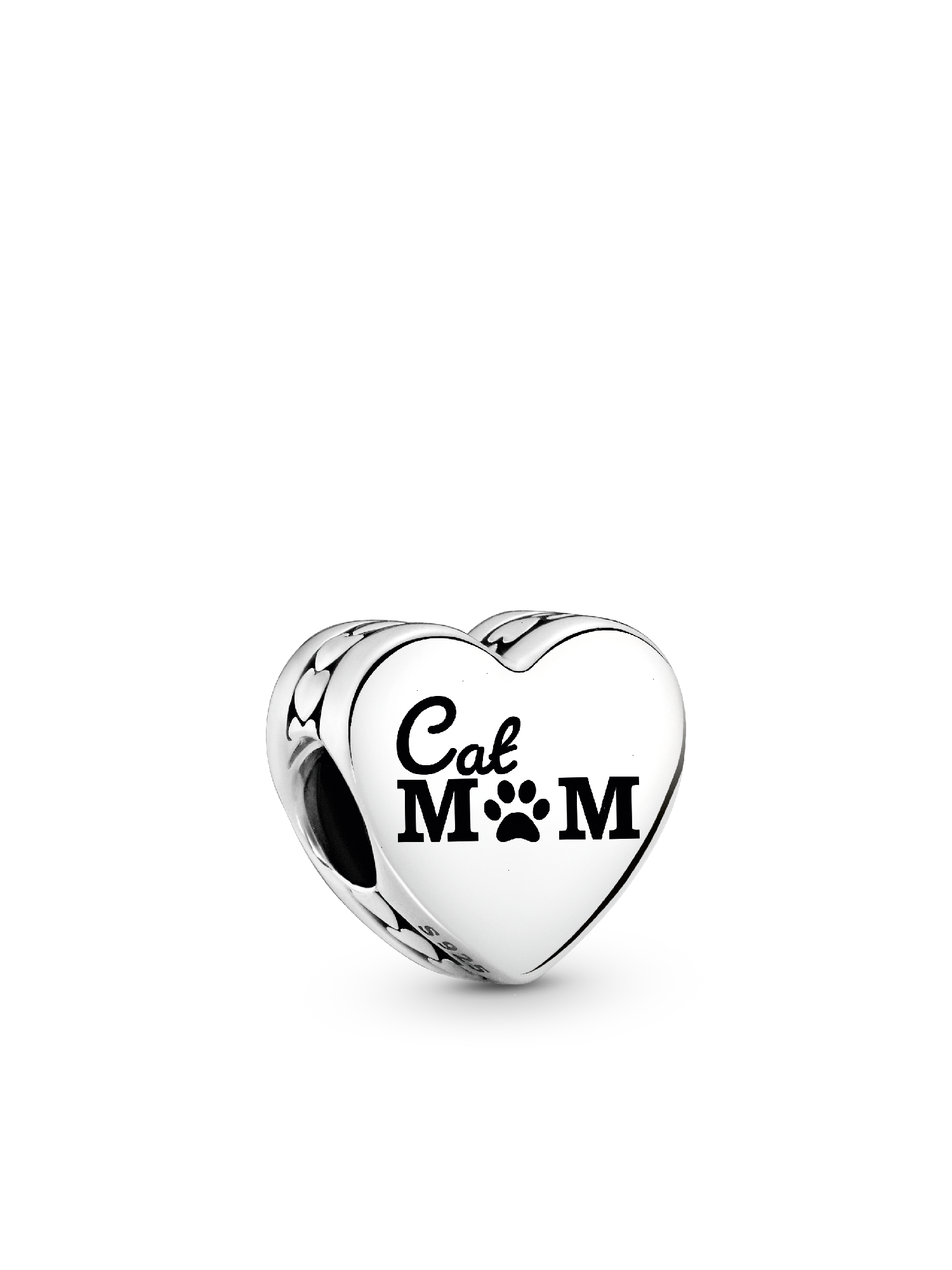 For the cat lover, this sterling silver Engravable Cat Mom Heart Charm features a row of polished hearts around the edges. Engraved with "Cat Mom," with a paw print as the "O," it’s a purrfect tribute to your feline companion. The back is blank, allowing you to add a custom engraving for a personal touch.