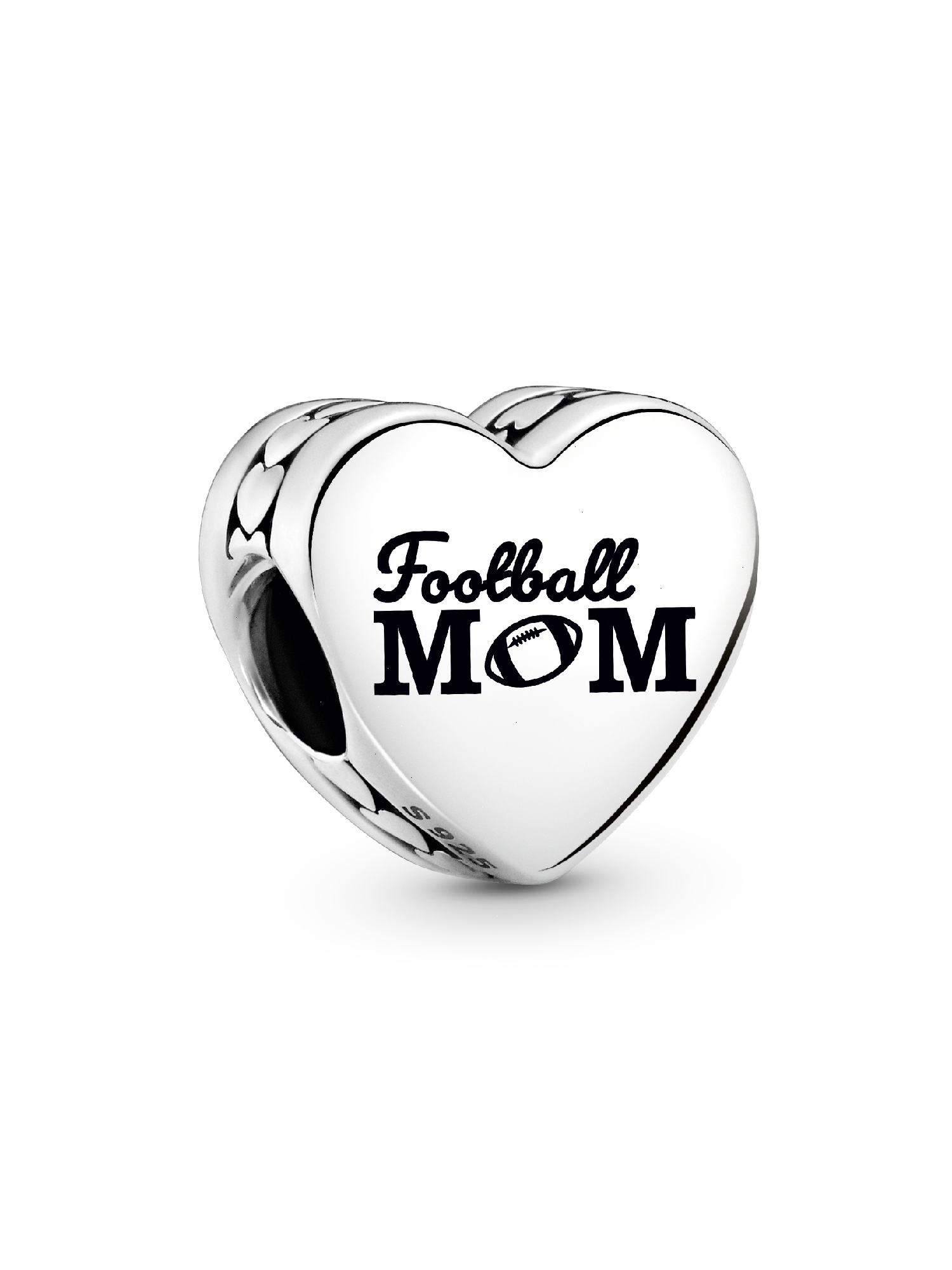 For the mom who cheers from the stands, this sterling silver Engravable Football Mom Heart Charm features a row of polished hearts and is engraved with "Football Mom," with a football as the "O." The back is engravable, allowing for a custom engraving to create a personal tribute to your favorite sport and your incredible support.
