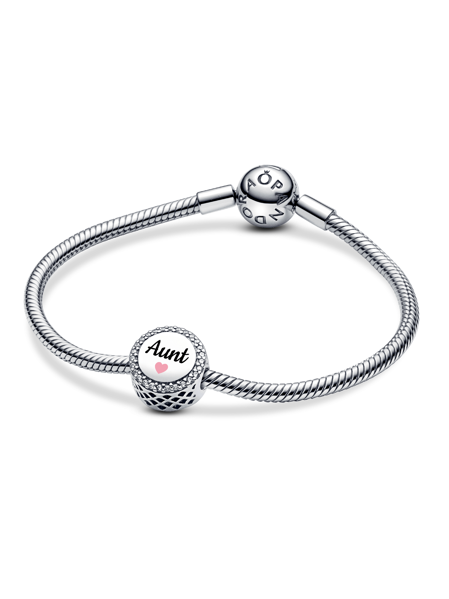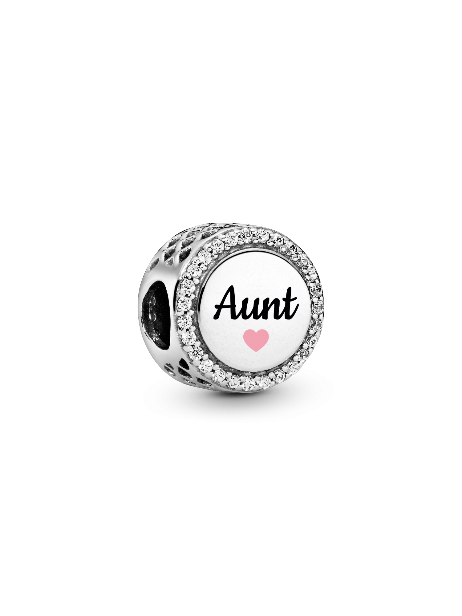 Show your appreciation for a beloved aunt with this Engravable Aunt Charm. A radiant row of pavé cubic zirconia enhances the "Aunt" engraving, accented by a soft pink heart beneath it. With an engravable back for a custom touch, this charm is a perfect blend of elegance and sentiment.