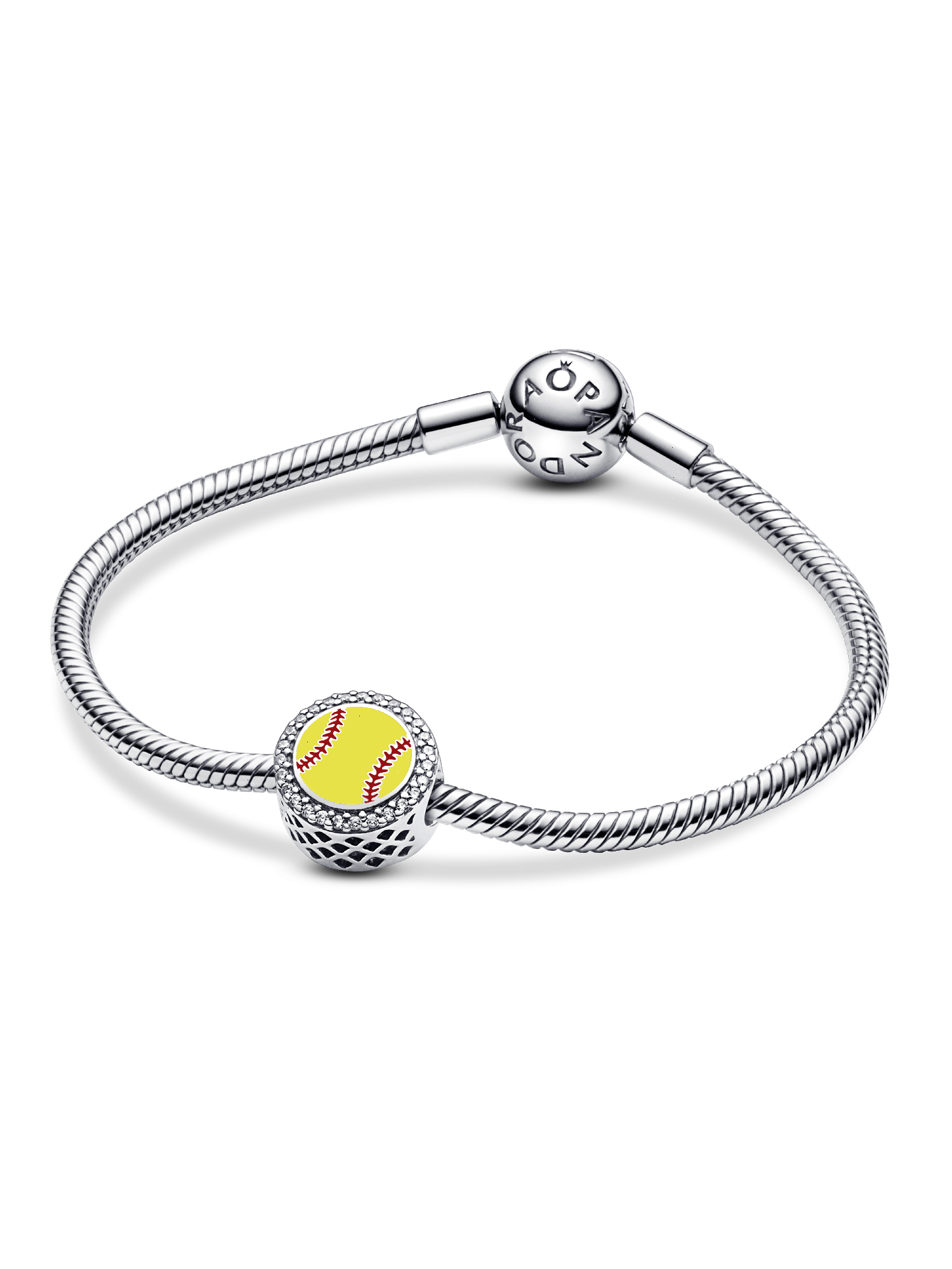 Celebrate your love for the game with this sterling silver softball charm, accented by cubic zirconias and space on the back for a personal engraving.
