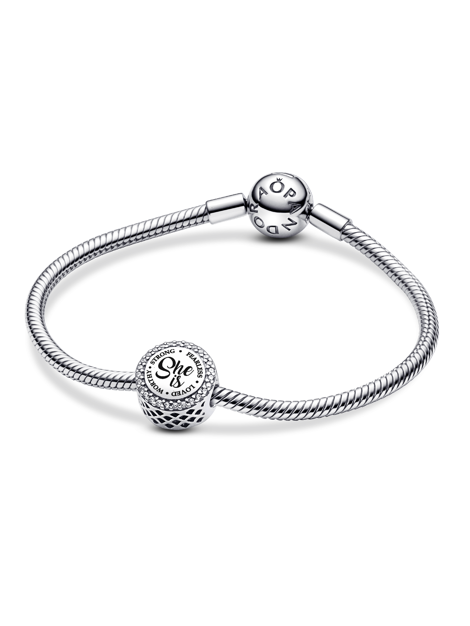 The Engravable She Is Heart Charm is a powerful reminder of strength and self-love. This sterling silver heart-shaped charm is framed by a dazzling row of cubic zirconia around the edges, adding a touch of sparkle to its bold message. In the center, “She Is” is inscribed, surrounded by empowering words: Strong, Fearless, Loved, Worthy—a celebration of all the qualities that make her incredible. The back of the charm is perfect for your personal engraving, making this a meaningful gift or a keepsake to carry with you, honoring the strength and beauty within.