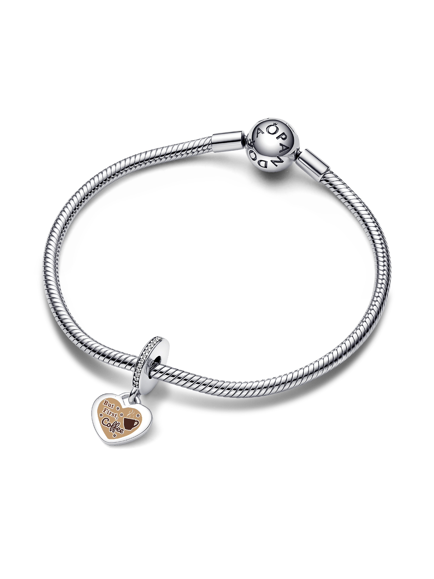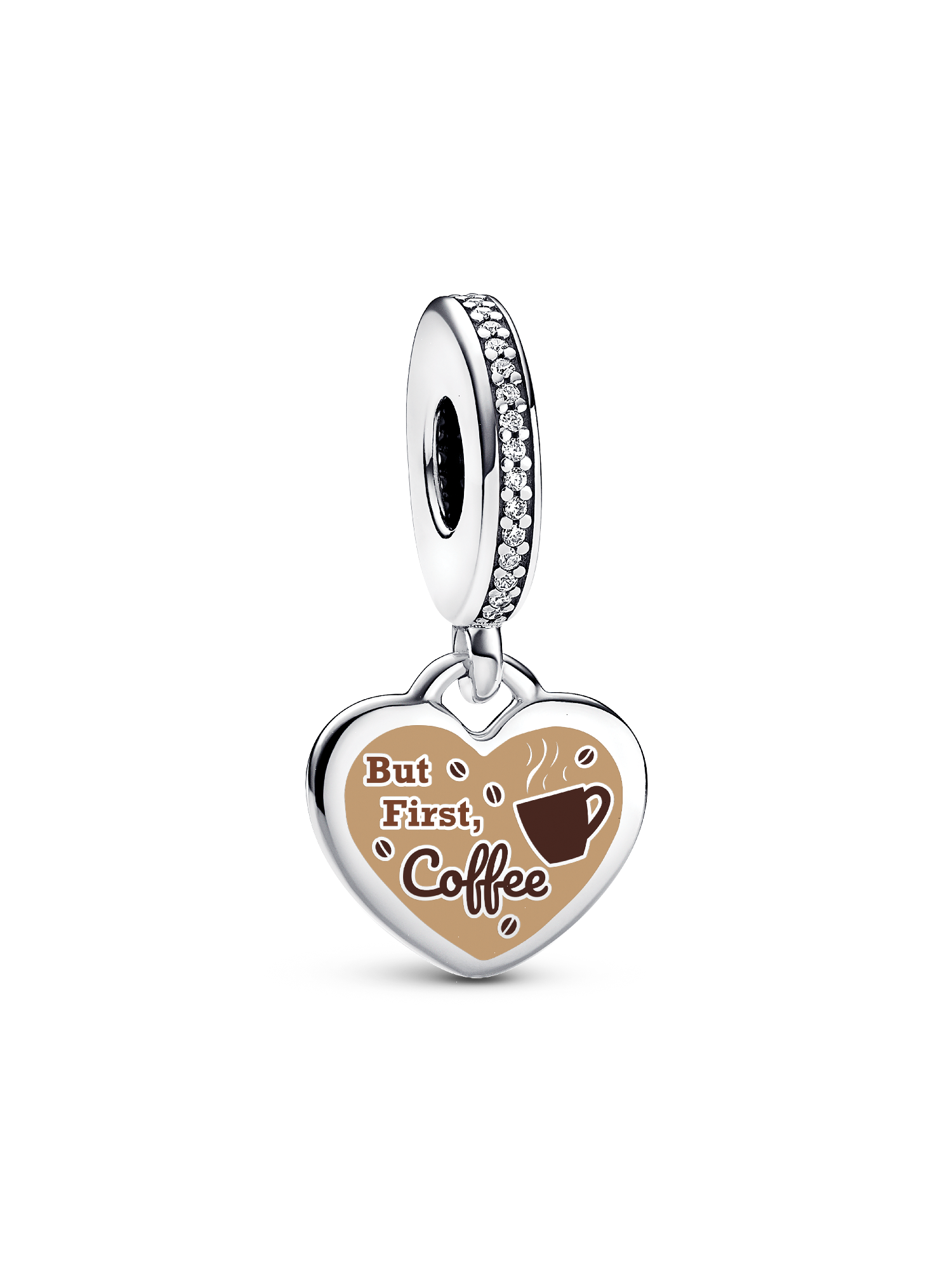 For the caffeine lover at heart, this sterling silver dangle charm shines with cubic zirconias and can be engraved for a personal, coffee-fueled touch.